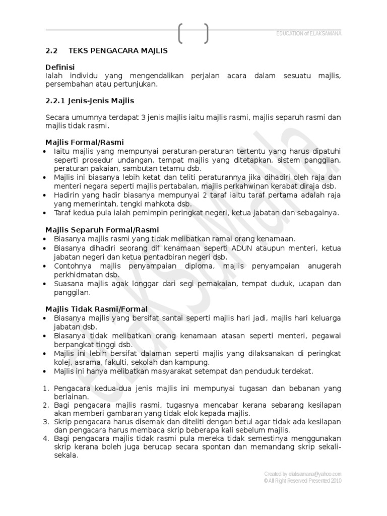 Teks Ucapan Y Bhg Naib Canselor Sempena Majlis Ramah Mesra Pelajar Pasca Siswazah Pdf Free Download from docplayer.info Cari informasi acara dan tentukan samada majlis diadakan secara formal atau tidak formal. Sebelum ini saya pernah dilantik dan dijemput mengacara beberapa buah majlis formal. We are a sharing community. Bila dia tidak makbulkan doamu, maka dia merancang sesuatu yang lebih baik. Please fill this form, we will try to respond as soon as possible. Di malam hari terang senegeri. Ingat, manusia itu salah satu sifat semulajadinya ialah? Pengacara majlis forum perdana sempena maulidur rasul: